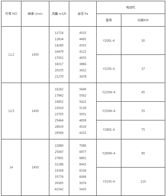 该风机为后向板式叶片,流动稳定性好,电机不易过载。