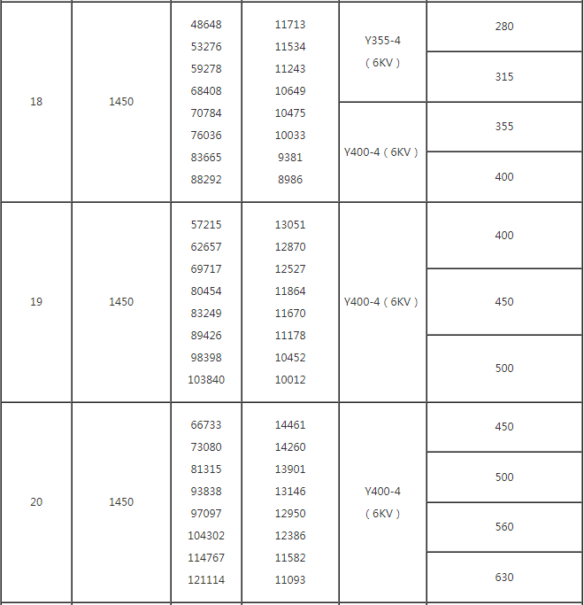 M6-29型煤粉离心通风机性能参数表
